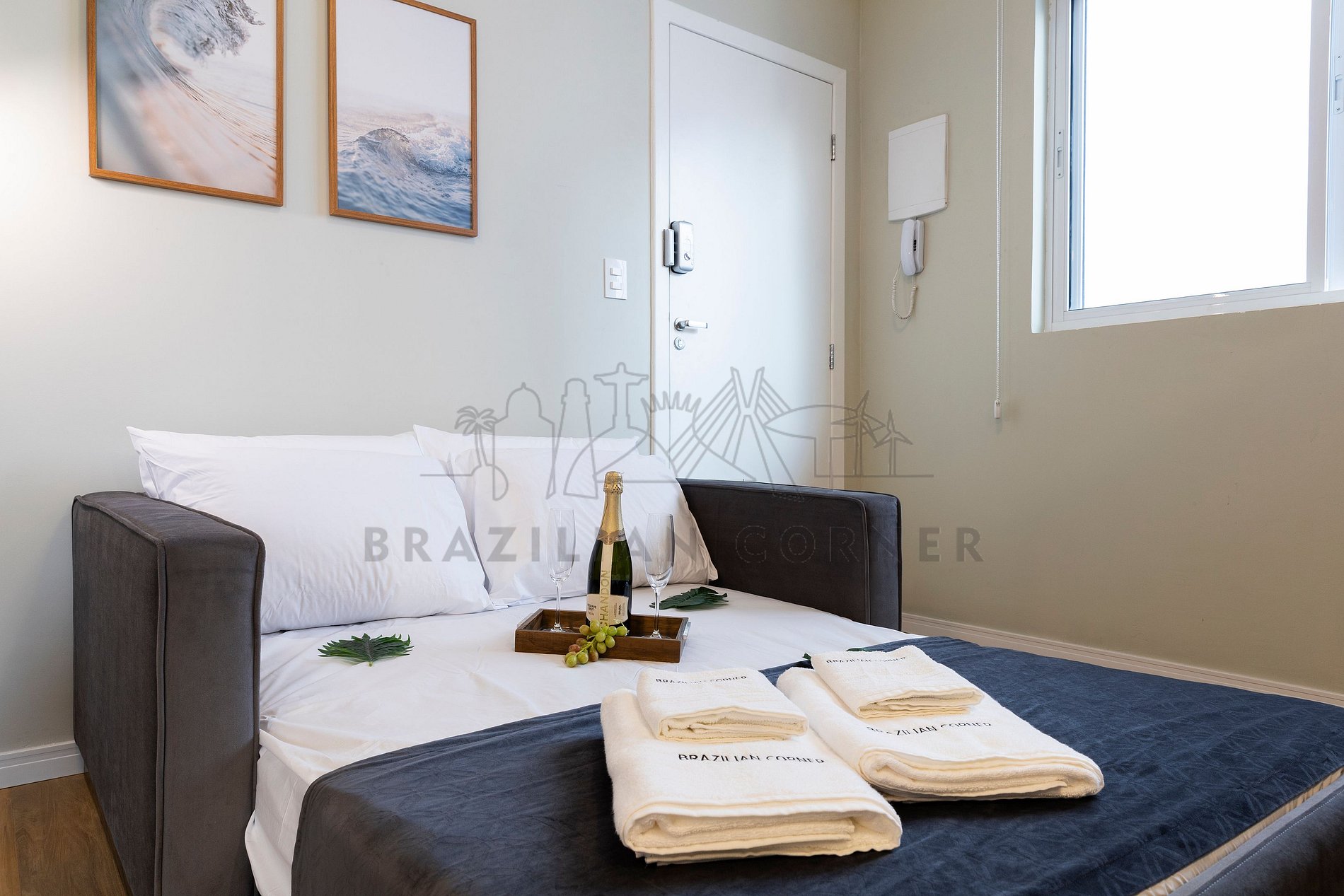 O estúdio é ideal para uma temporada na cidade, seja a lazer ou a trabalho. Conta com ar-condicionado, varanda charmosa, cama confortável, internet de alta velocidade, Smart TV, blackout para garantir boas noites de sono, além de uma cozinha completa com eletrodomésticos e utensílios para quem gosta de cozinhar.