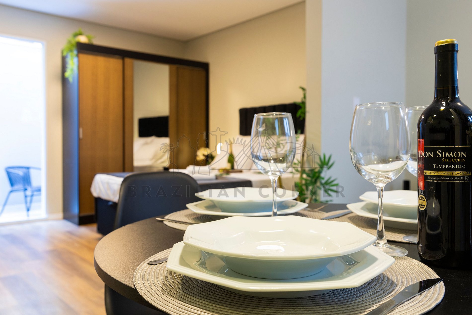 O estúdio é ideal para uma temporada na cidade, seja a lazer ou a trabalho. Conta com ar-condicionado, varanda charmosa, cama confortável, internet de alta velocidade, Smart TV, blackout para garantir boas noites de sono, além de uma cozinha completa com eletrodomésticos e utensílios para quem gosta de cozinhar.