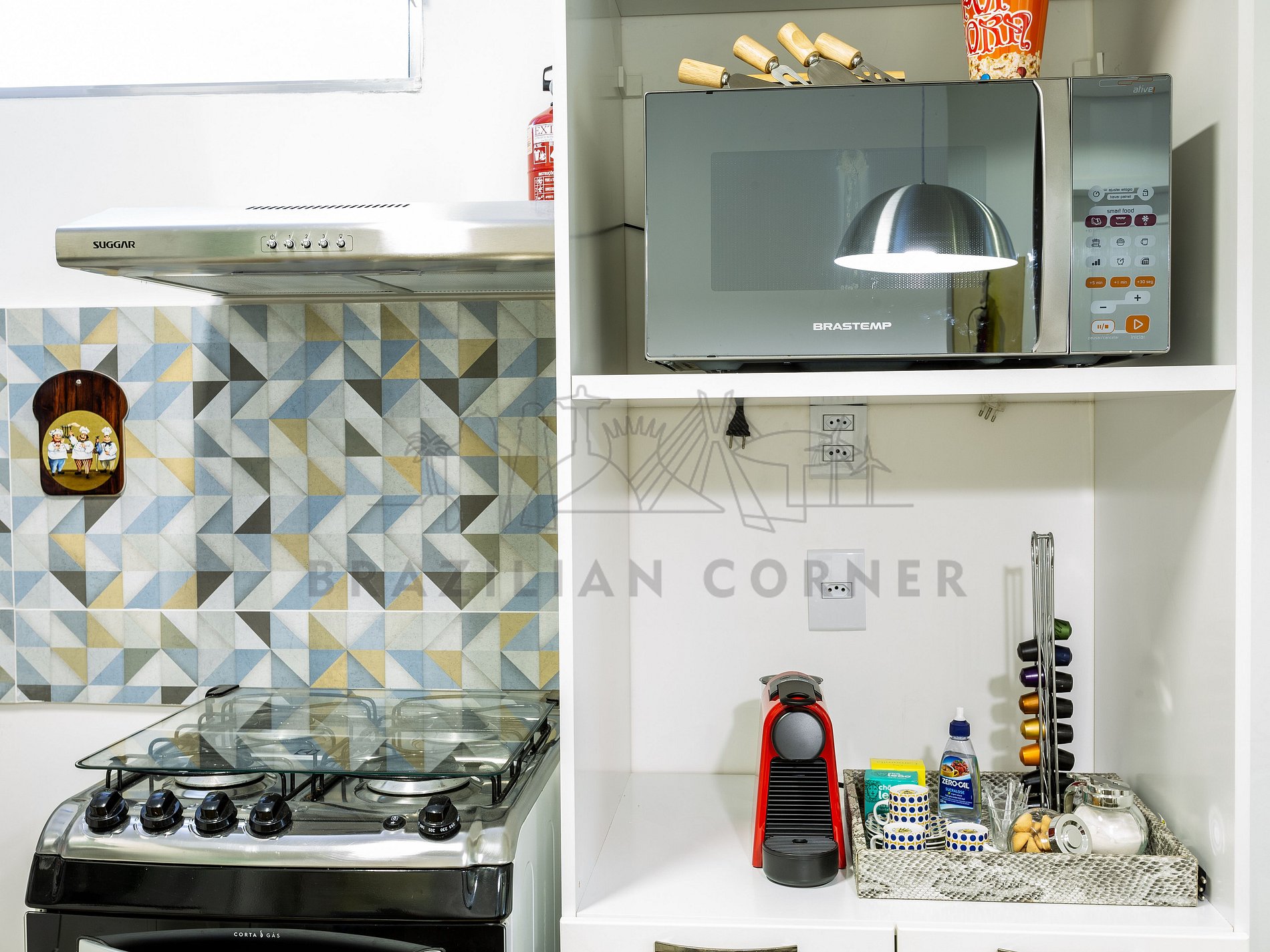 - Fogão: Sinta-se em casa na nossa cozinha, completa com um moderno fogão, proporcionando a flexibilidade para preparar suas refeições favoritas. Seja um mestre culinário ou alguém que gosta de experimentar novos sabores, você terá tudo o que precisa à sua disposição.