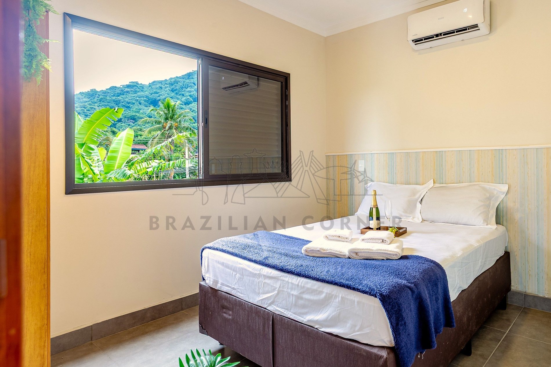 Imóvel administrado pela empresa profissional Brazilian Corner, este apartamento charmoso localizado na praia de maresias a apenas 550m da praia é perfeita para uma temporada, ele oferece todas as comodidades que você precisa para uma estadia confortável e agradável no litoral norte, pois conta com estacionamento, jacuzzi, churrasqueira, varanda, mesa de jantar para 4 pessoas, fechadura digital, 2 quartos, ar condicionado, SmartTV, internet, mesa de trabalho, cozinha completa, máquina de lavar.