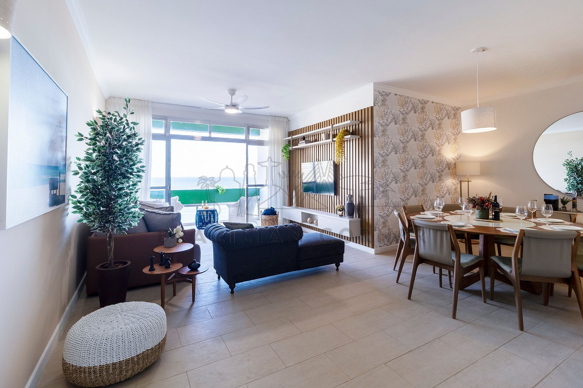 Perfeita para curtir bons momentos com amigos e familiares, a VARANDA é aquele cantinho ideal para relaxar, bater papo e aproveitar o tempo com conforto. Seja para toma um café apreciando a vista para o mar, assistir ao pôr do sol ou simplesmente aproveitar a tranquilidade do ambiente, esse espaço torna cada momento ainda mais especial. Ela está equipada com: