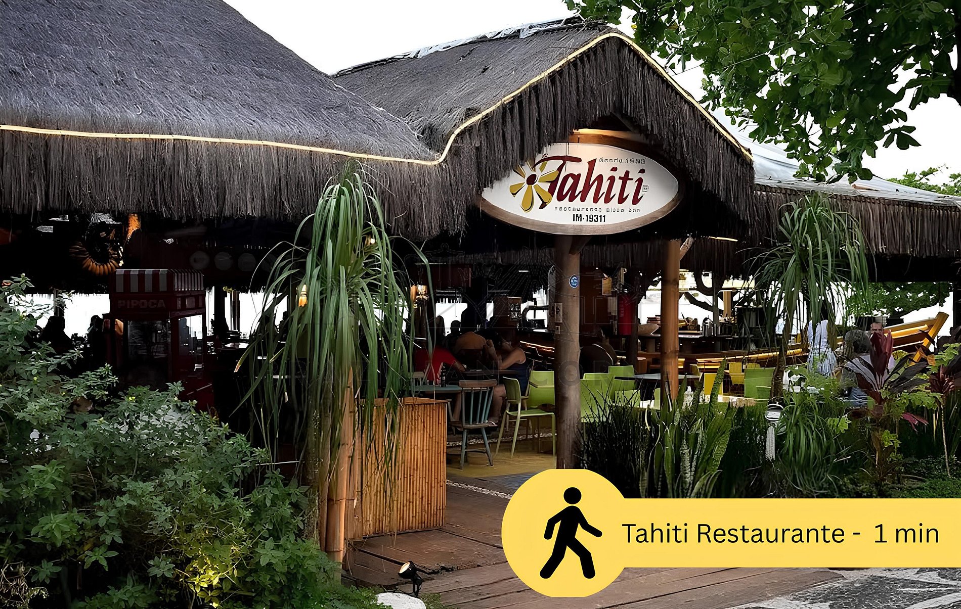 Nos arredores do apartamento, você encontrará diversas conveniências e opções de lazer. Para o dia a dia, há supermercados, como o Pão de Açúcar, academias, como a Smart Fit Pitangueiras, e padarias, como a Bella Guarujá, além de ótimos restaurantes, incluindo o famoso Tahiti Restaurante.