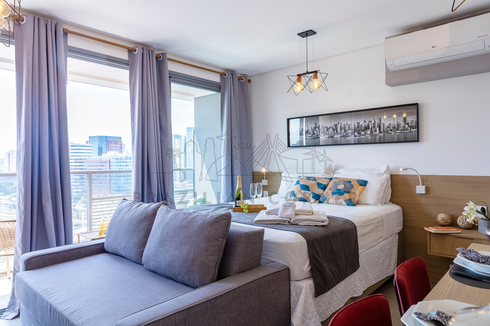 - Cortinas Blackout: Uma boa noite de sono é essencial. Por isso, em todos os quartos da nossa locação, você encontrará cortinas blackout, garantindo um ambiente escuro e silencioso para um descanso revigorante.