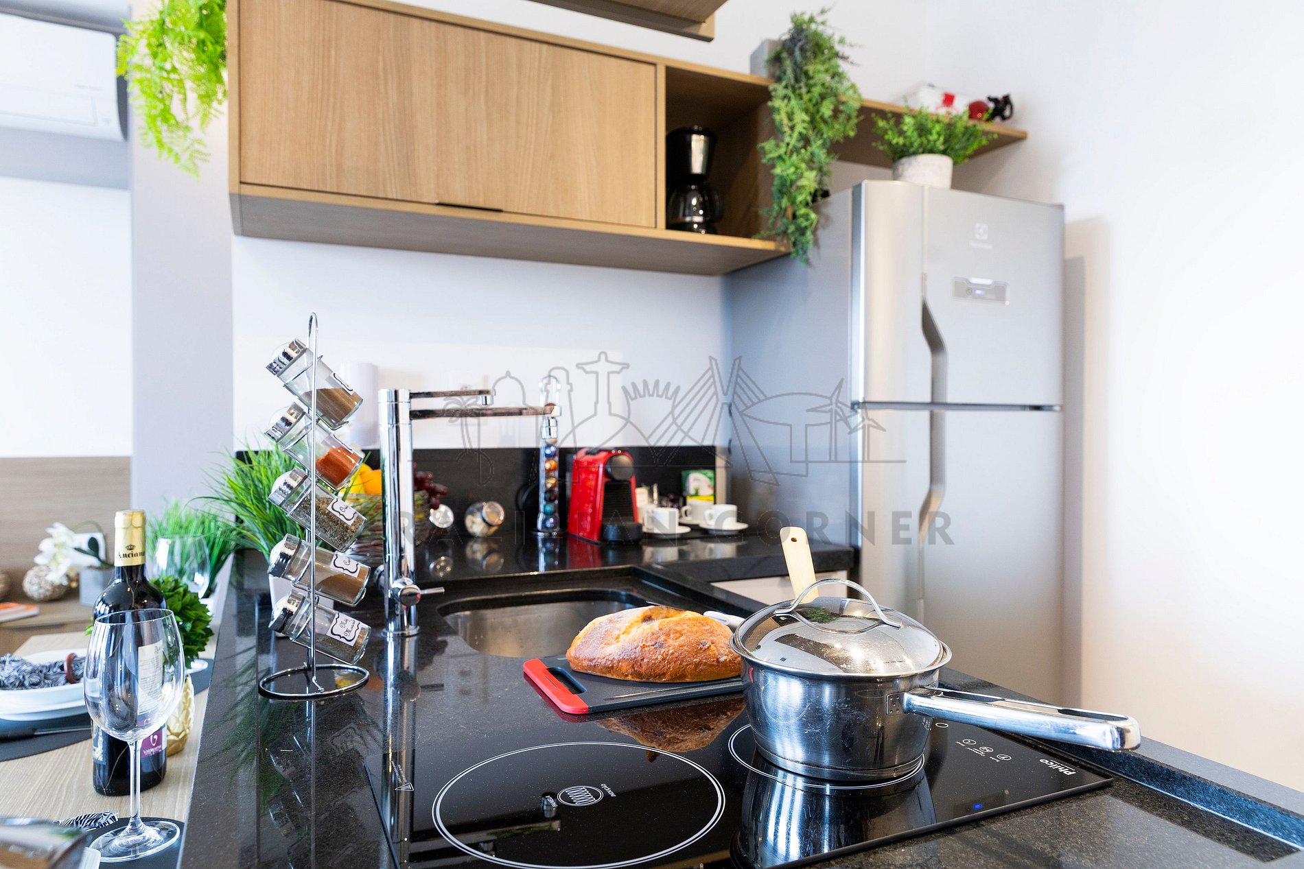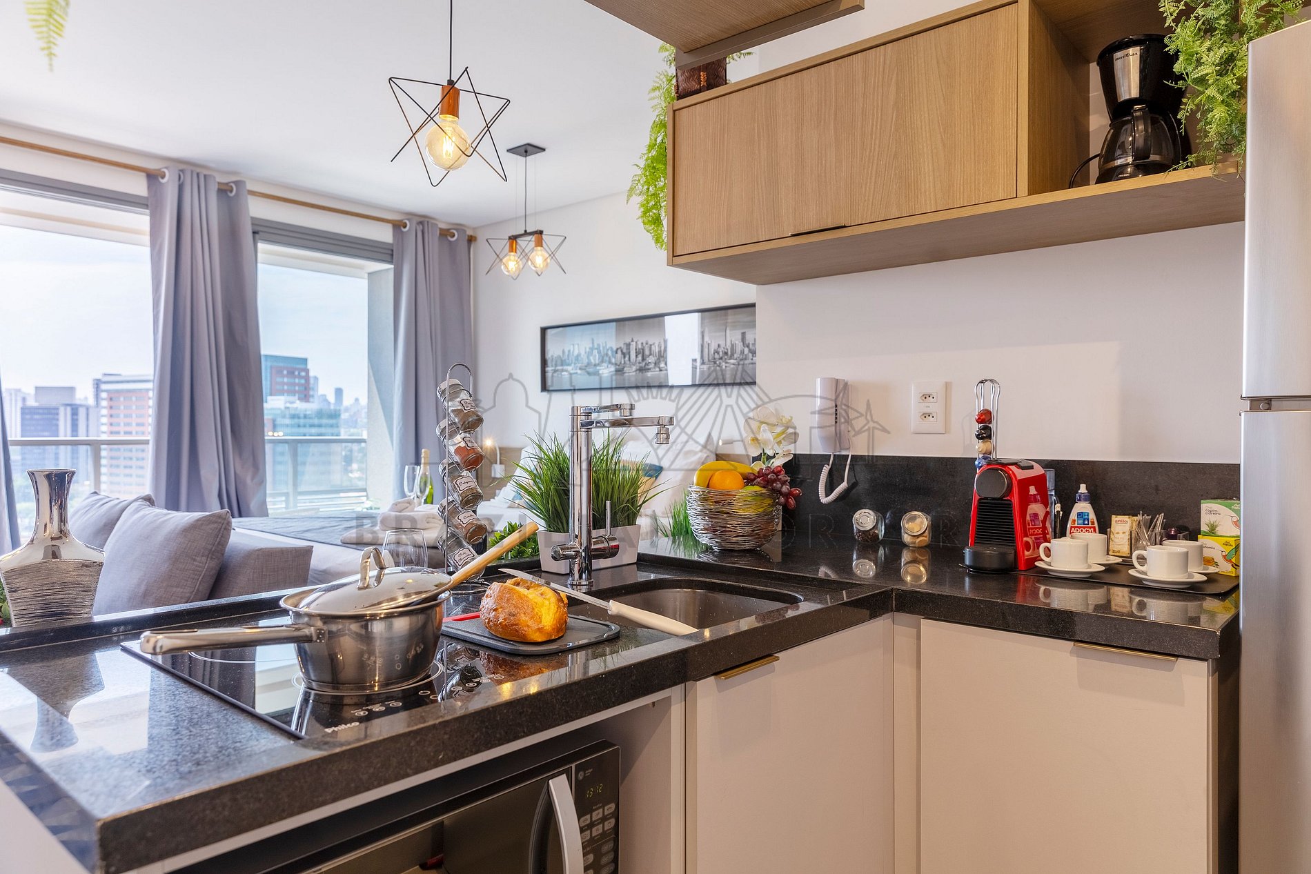 - Fogão: Sinta-se em casa na nossa cozinha, completa com um moderno fogão, proporcionando a flexibilidade para preparar suas refeições favoritas. Seja um mestre culinário ou alguém que gosta de experimentar novos sabores, você terá tudo o que precisa à sua disposição.