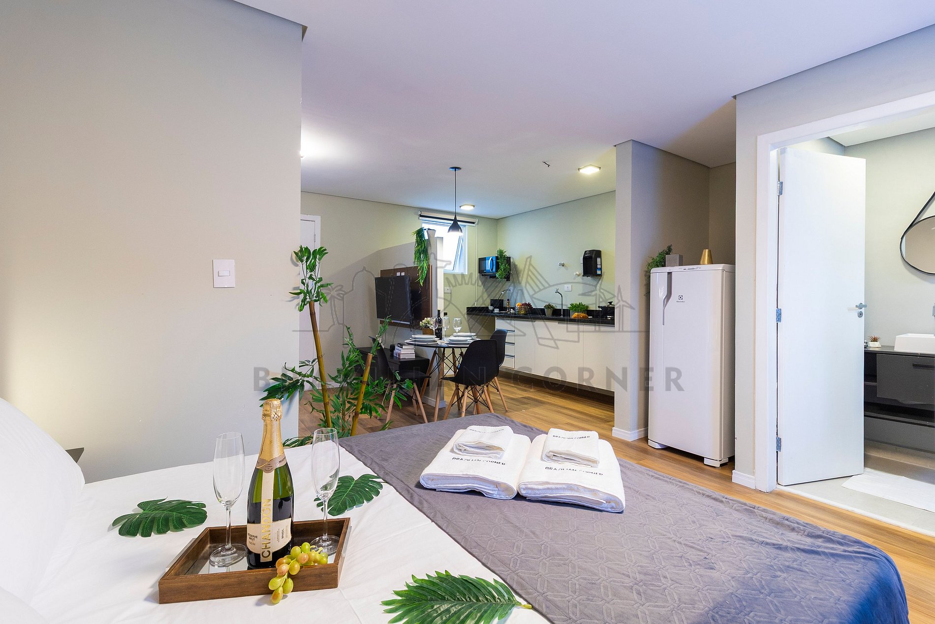 O estúdio é ideal para uma temporada na cidade, seja a lazer ou a trabalho. Conta com ar-condicionado, varanda charmosa, cama confortável, internet de alta velocidade, Smart TV, blackout para garantir boas noites de sono, além de uma cozinha completa com eletrodomésticos e utensílios para quem gosta de cozinhar.
