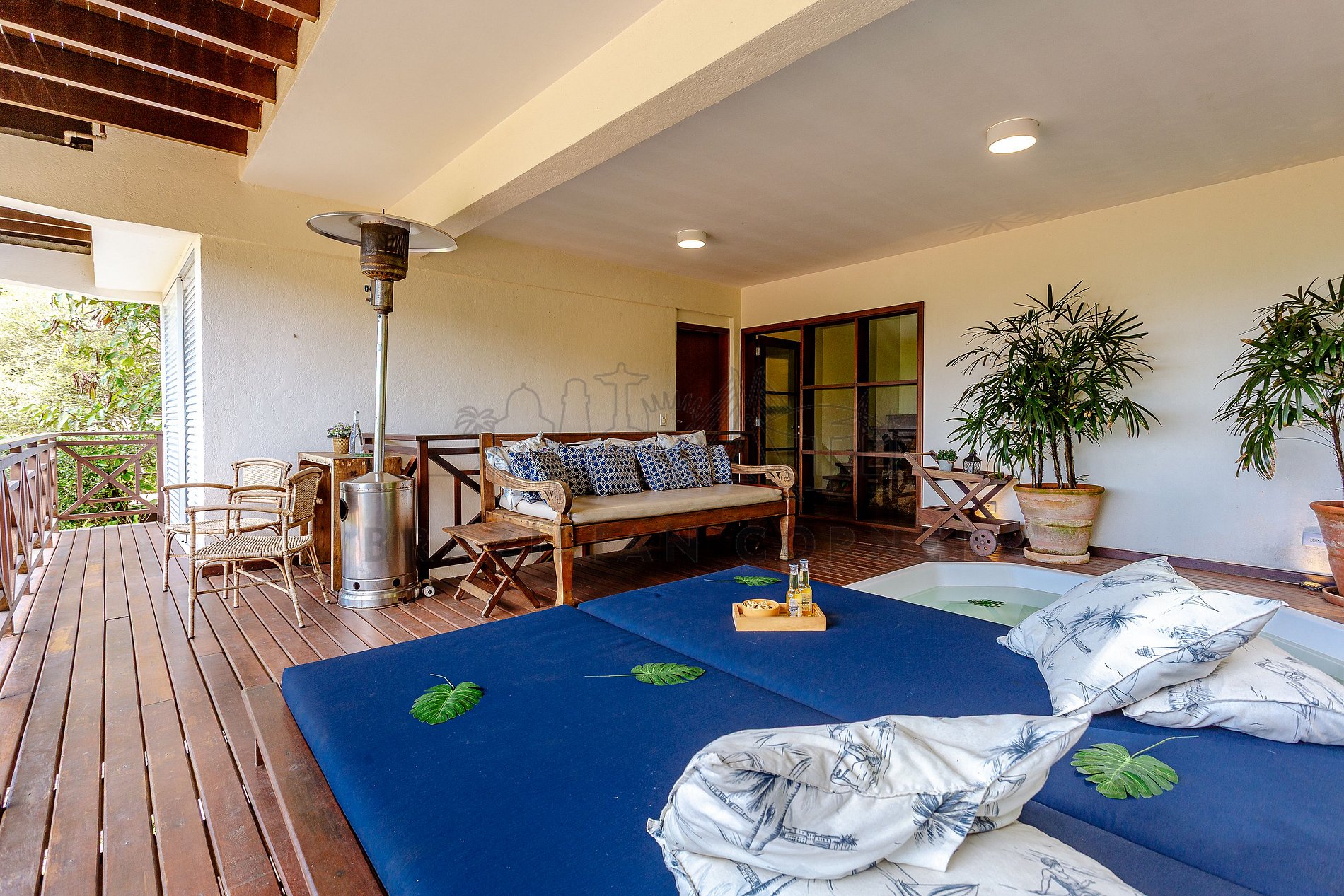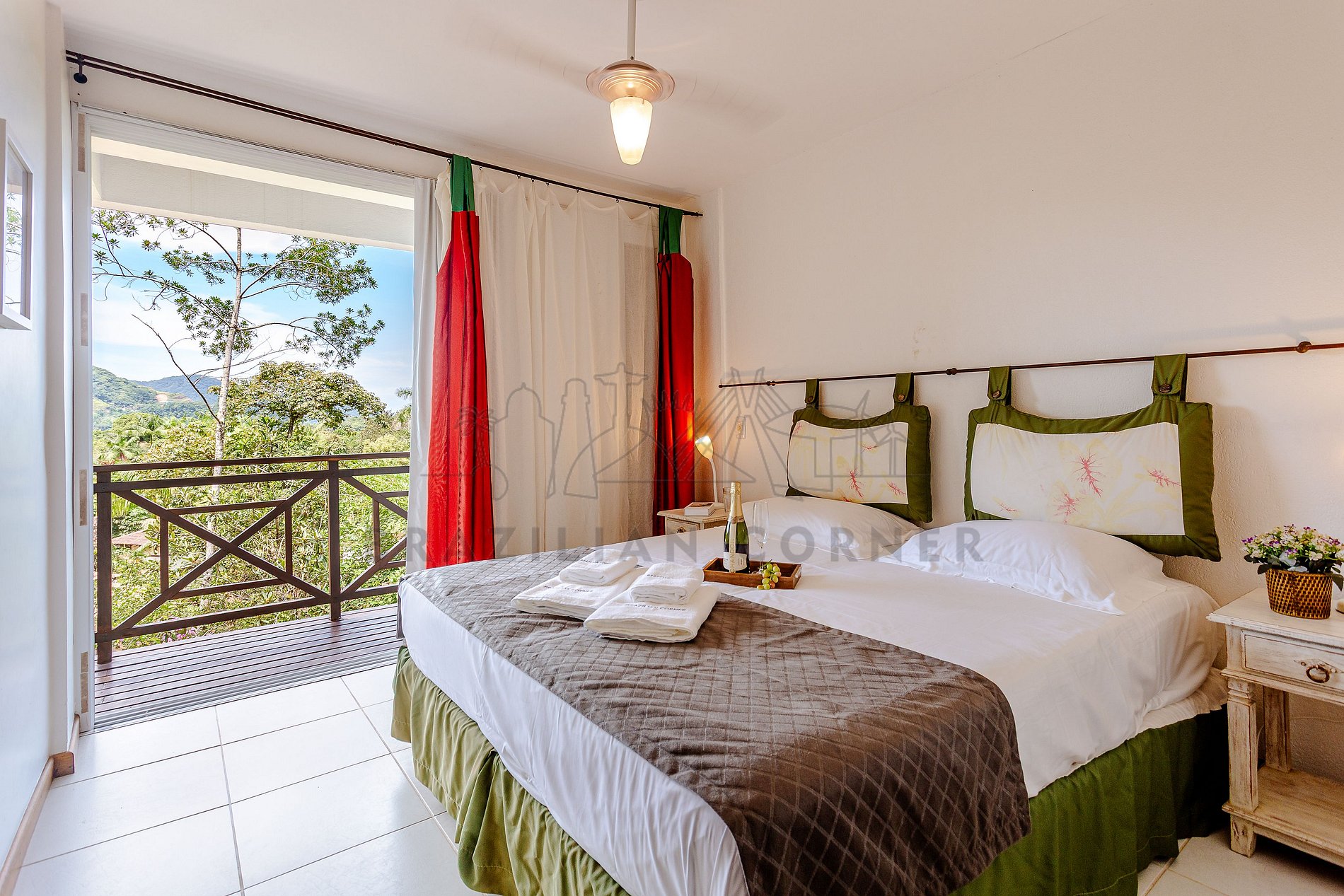 Imóvel administrado pela empresa profissional Brazilian Corner. Localizada em condomínio fechado perto da praia, essa charmosa casa é perfeita para quem quer relaxar junto à Mata Atlântica e não abre mão de ficar próximo à praia. Com uma vista incrível, varanda com churrasqueira, Jacuzzi privativa, 4 suítes com ar condicionado, cozinha completa, internet e estacionamento para 4 carros. No condomínio você pode aproveitar a piscina e o serviço montagem e desmontagem de barraca e cadeiras na praia.