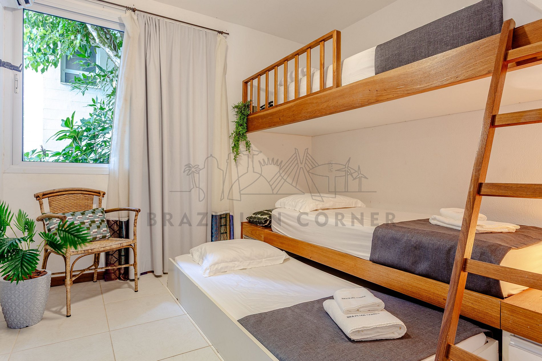 - Beliche: Aproveite a estadia com quem importa, disponibilizamos um quarto com uma beliche e uma cama auxiliar para aproveitar ao máximo temporada em família e as noites de sono.