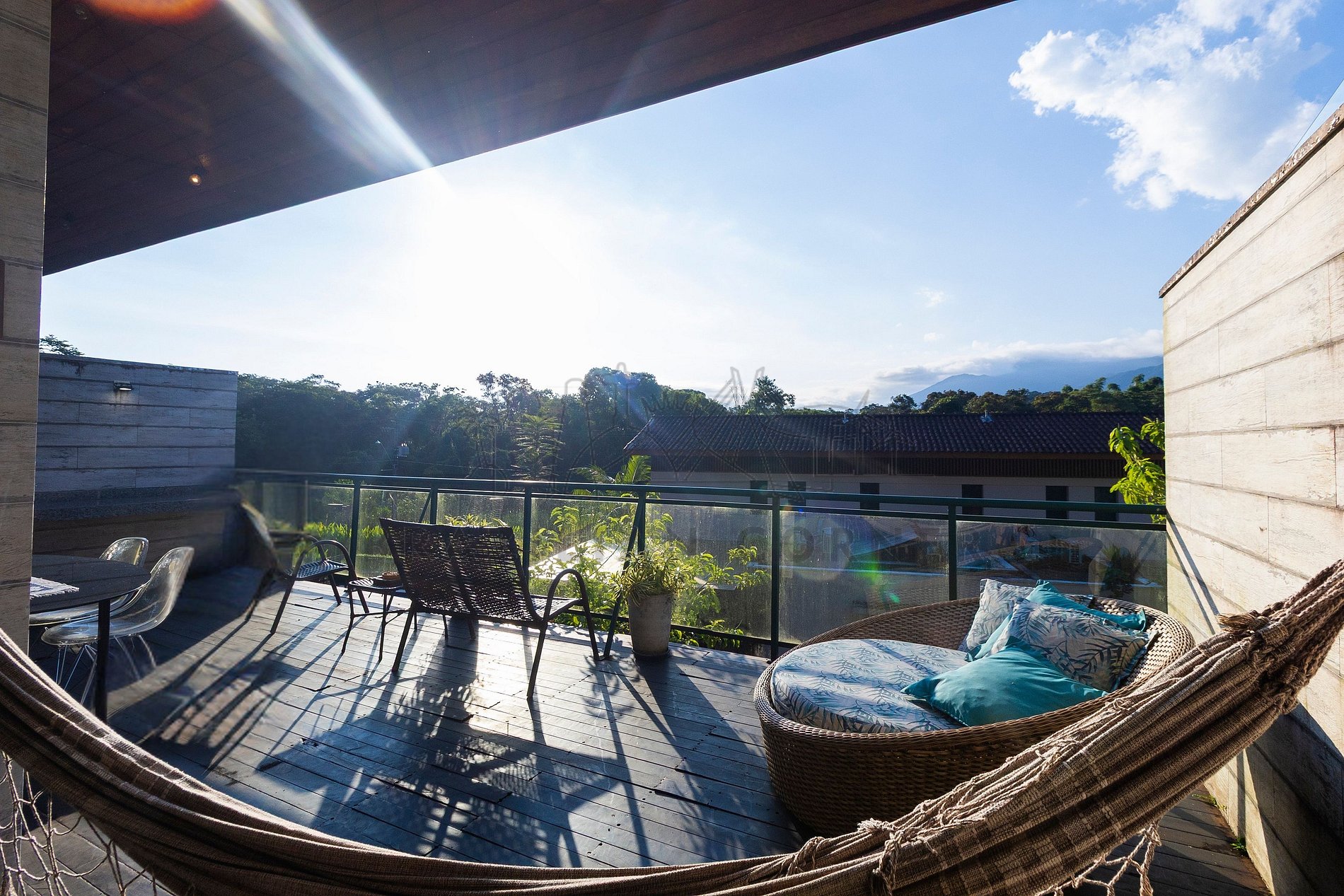 Perfeita para curtir bons momentos com amigos e familiares, a VARANDA é aquele cantinho ideal para relaxar, bater papo e aproveitar o tempo juntos. Seja para fazer uma refeição ao ar livre, assistir ao pôr do sol ou simplesmente aproveitar a brisa, esse espaço torna cada momento ainda mais gostoso. Ela está equipada com: